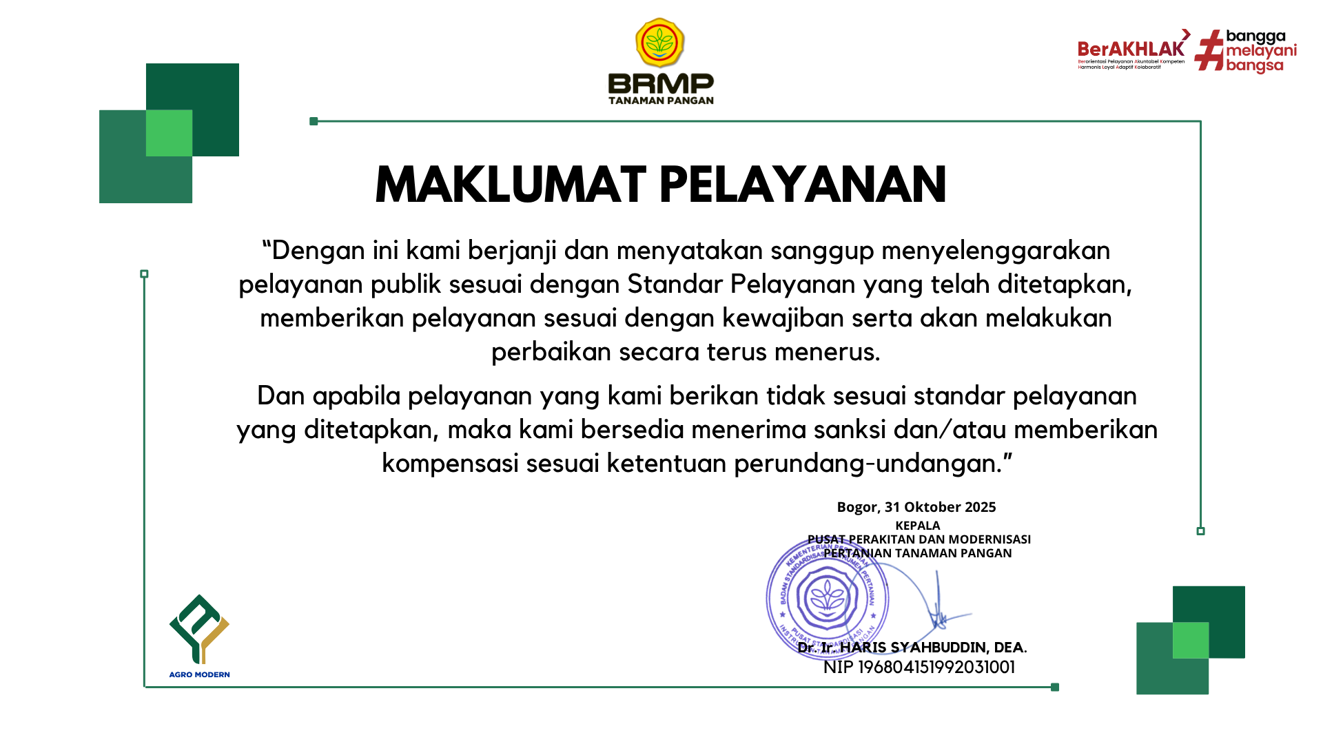 KEPALA PUSAT PERAKITAN DAN MODERNISASI PERTANIAN TANAMAN PANGAN