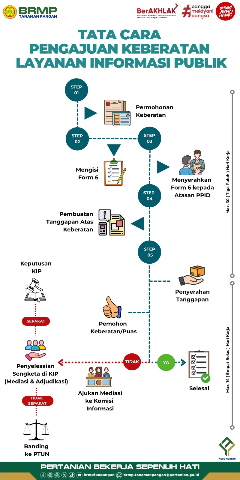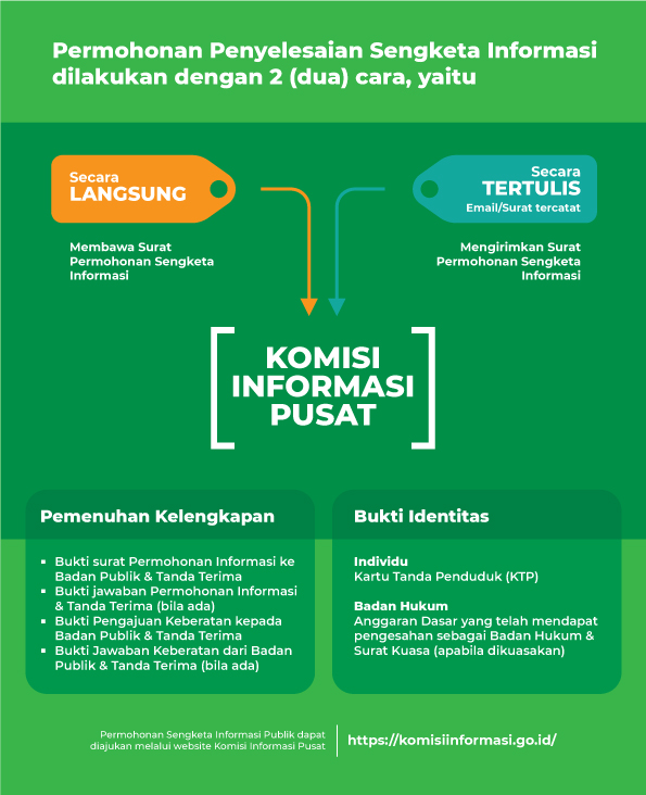Setiap pemohon informasi publik dapat mengajukan keberatan secara tertulis kepada atasan Pejabat Pengelola Informasi dan Dokumentasi dengan alasan sebagaimana ditetapkan dalam pasal 35 Undang-Undang Nomor 14 Tahun 2008. Keberatan diajukan oleh Pemohon Informasi Publik dalam jangka waktu paling lambat 30 (tiga puluh) hari kerja setelah yang bersangkutan menemukan alasan keberatan.