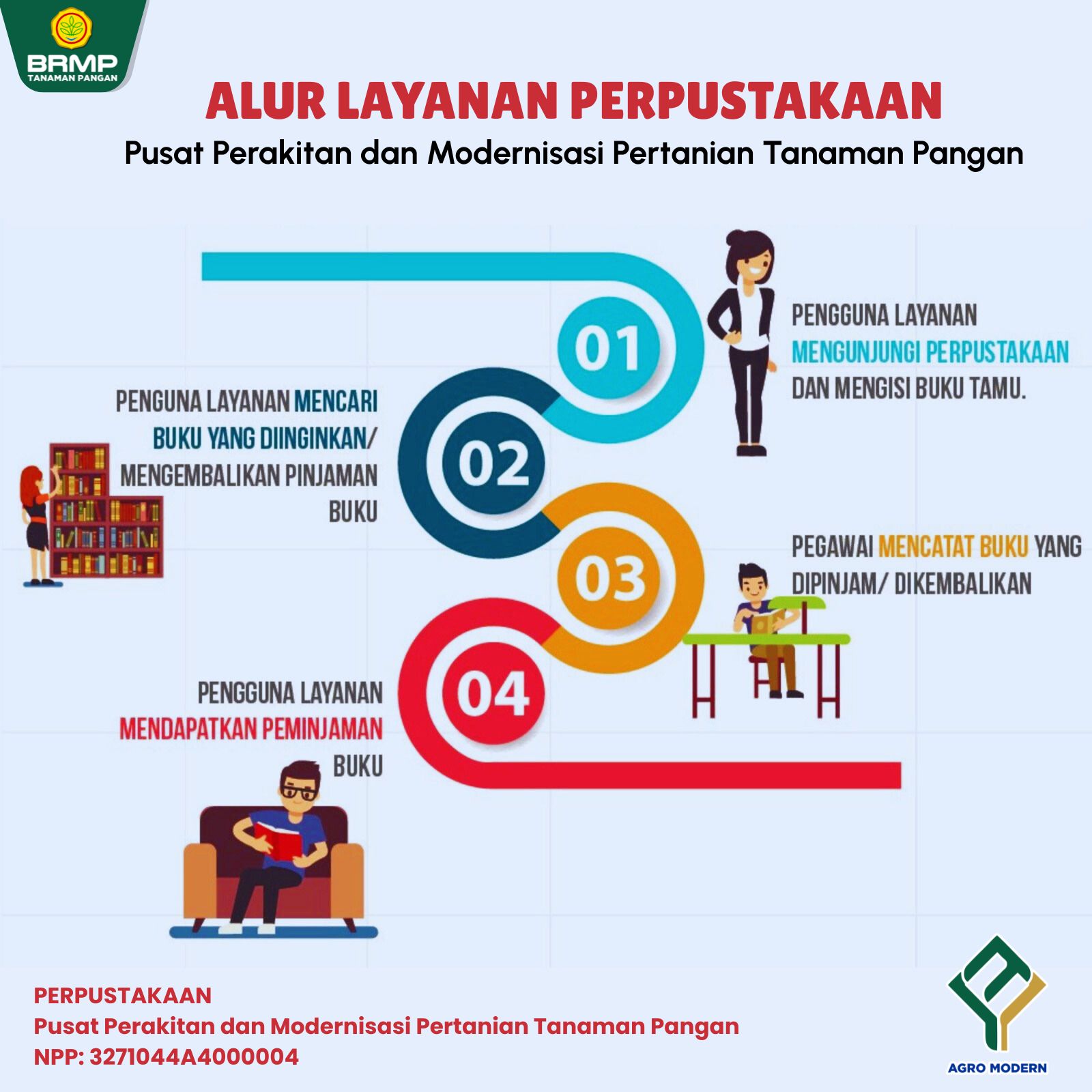 Perpustakaan Pusat Perakitan dan Modernisasi Pertanian Tanaman Pangan (PPMPTP) merupakan perpustakaan khusus yang memberikan pelayanan informasi bidang pertanian secara prima dengan menitikberatkan pada kemudahan akses informasi digital oleh pengguna/pemustaka. Saat ini, Perpustakaan PPMPTP sedang melaksanakan pengembangan layanan perpustakaan dengan mengintegrasikan Informasi dan Komunikasi (TIK) yang telah mengalami banyak perubahan dan perkembangan seiring dengan dinamika organisasi di PPMPTP. Perpustakaan PPMP Tanaman Pangan sudah memiliki nomor NPP: 3271044A4000004 yang diterbitkan oleh Perpustakaan Nasional Republik Indonesia (Perpusnas).